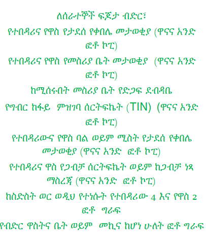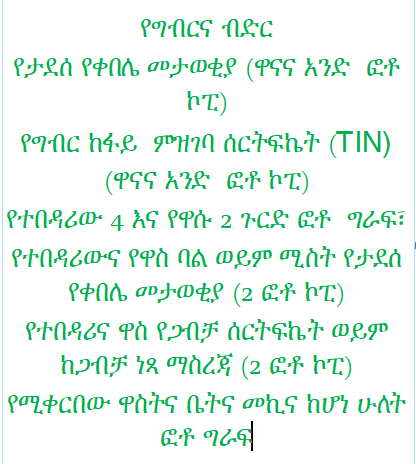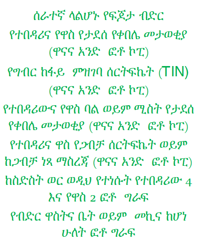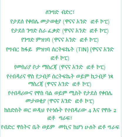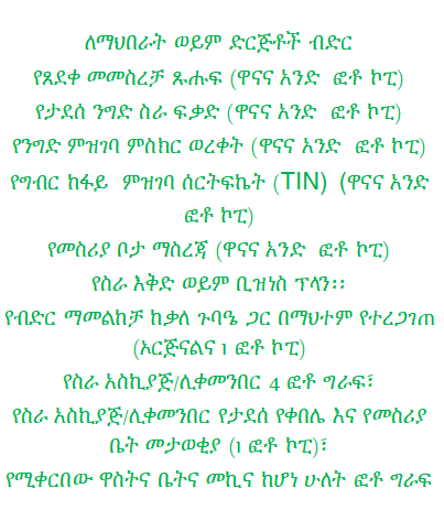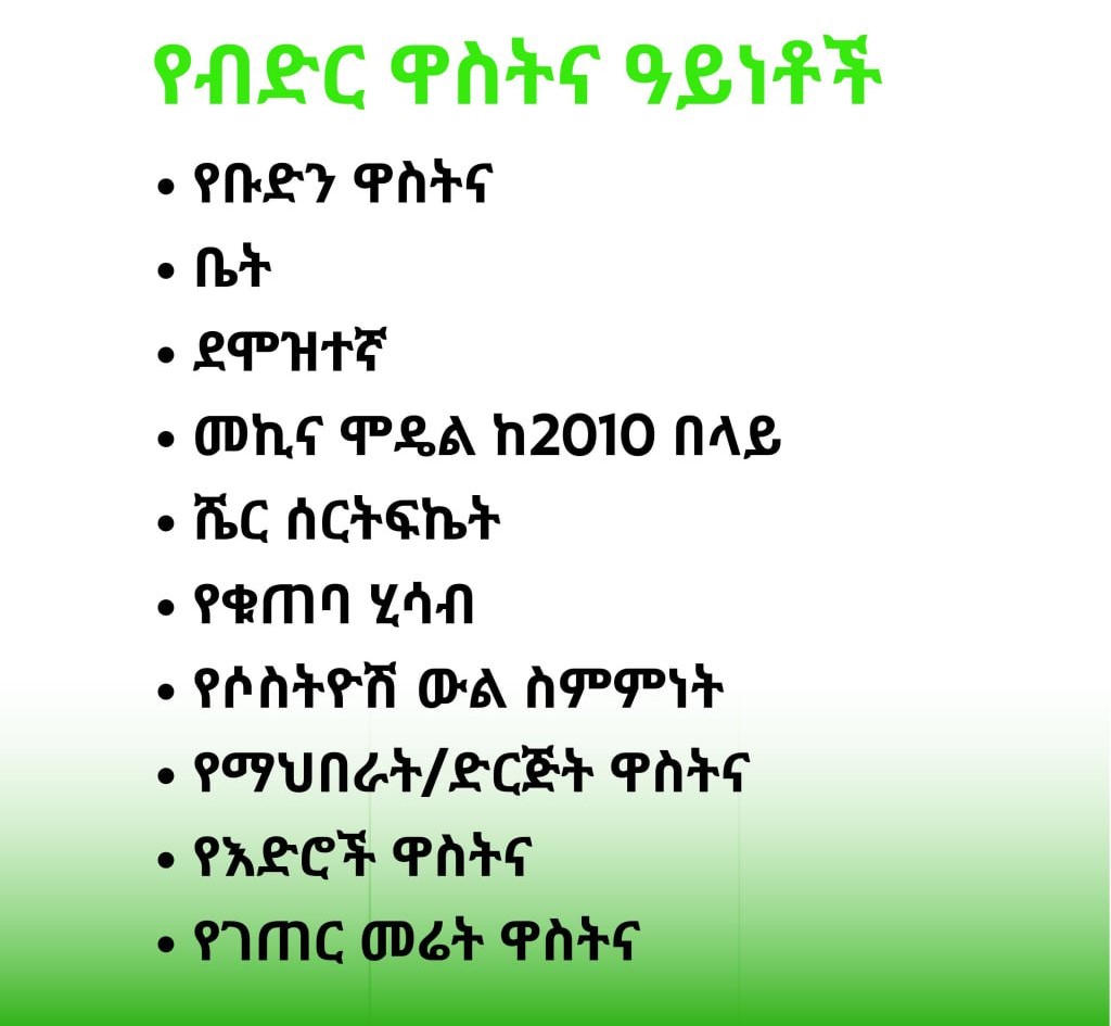 የምንሰጠው የብድር አይነትና መማላት ያለባቸው ፋይሎች